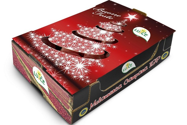E' cominciata, in casa Aop Luce, la commercializzazione delle confezioni natalizie di Melannurca Campana Igp: una box da 2 chili, realizzata in cartone 30x40, con coperchio intagliato a forma di abete, che permette sia di visualizzare i frutti all'interno,e allo stesso tempo ne garantisce una buona conservazione. E' una valida idea regalo per chi ricerca idee originali, salutari e gourmet.