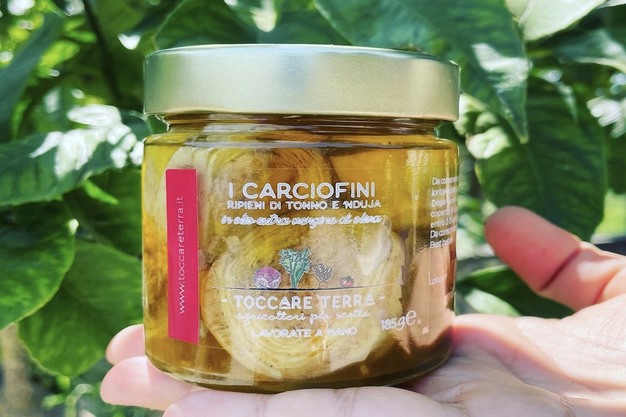 "La Calabria ha tutte le potenzialità per avvicinare i giovani alla terra. Coltiviamo ortaggi in modo sostenibile e senza forzature, per poi realizzare una gamma variegata di trasformati con metodi artigianali e partendo da materia prima appena raccolta dalla terra. I nostri prodotti di punta sono le passate di pomodoro e le conserve sottolio a base di melanzane, che ripropongono le tradizionali ricette contadine calabresi". Così raccontano Mariana e Luigi Movimento, quest’ultimo titolare di Toccare Terra.