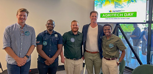 Primo AgriTech Day di novembre: Wian Potgieter (AgrigateOne MD UK & Europe), Jackson Dyora (Khula Agricultural Technology), Dante Visser (AgrigateOne Chief of Technology), Michael Stannard (Platform Investment Partners) e Zamokuhle Thwala (AgriKool)