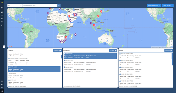 L'anno scorso, l'azienda ha raggiunto la completa integrazione della catena di fornitura, dall'azienda agricola di agrumi del Limpopo fino al destinatario nel Regno Unito. Il loro dashboard in tempo reale consente il monitoraggio in tempo reale del viaggio di ciascun pallet, fornendo informazioni preziose per la gestione e il controllo delle scorte.