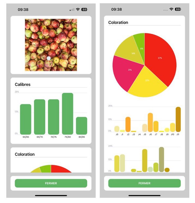 PommaQuality® utilizza l'intelligenza artificiale per analizzare le immagini delle mele catturate dall'app mobile, al fine di fornire stime precise su calibro e colore. "Il primo passo è fotografare il pallet di mele, avendo precedentemente posizionato al suo interno una pallina da ping-pong che fungerà da riferimento. L'intelligenza artificiale analizza quindi la foto, valutando i calibri e il colore della mela", spiega Mathieu Gazeau. "I dati analizzati vengono quindi inviati a un computer per la visualizzazione istantanea. L'applicazione è in grado di rilevare l'intensità del rosa, fondamentale ad esempio per le mele Pink Lady, nonché la sfumatura gialla delle varietà gialle. Un altro vantaggio dell'app è la possibilità di aggiungere manualmente il riconoscimento dei difetti".