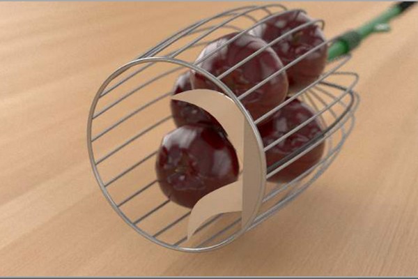 Il dispositivo è costituito da un cesto di raccolta della frutta posto all'estremità superiore di un'asta telescopica, regolabile con un meccanismo che consente di recidere i frutti (ad esempio, cachi, mele, ecc.) in corrispondenza del picciolo. Il meccanismo è costituito da un grilletto che aziona le lame di taglio presenti nel cesto della frutta. Può essere presente anche una batteria al litio interna e un cablaggio sufficiente a facilitare l'attivazione automatica delle lame. La lama di taglio può essere azionata anche manualmente, se lo si desidera. L'utente può impugnare l'attrezzo tramite una comoda maniglia, stando in piedi a livello del suolo e posizionando il cesto fino al frutto sull'albero con il gambo tra le lame di potatura, che saranno posizionate orizzontalmente. Dopo di che azionerà il grilletto per chiudere le lame, tagliare il gambo e far cadere i frutti nel cesto. È possibile regolare l'angolo di taglio delle lame per adattarsi ai frutti di diverse altezze e angolazioni. Lo strumento è leggero e facile da usare.