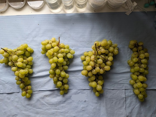 Fig. 1 Stato dei grappoli coltivati sotto film che provocano maggiore freschezza.