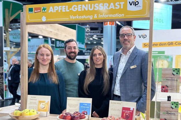 "Prendere parte a questa fiera di settore è per noi da sempre importante, e oggi lo è ancora di più. La raccolta 2023 ha registrato un +20% dei volumi di mele biologiche rispetto al 2022, ma parallelamente i principali competitor in Italia e in Europa hanno subìto un calo dei raccolti, ponendoci in una situazione molto favorevole" commenta il product manager Bio di VIP Gerhard Eberhöfer (nella foto qui sotto a sinistra).