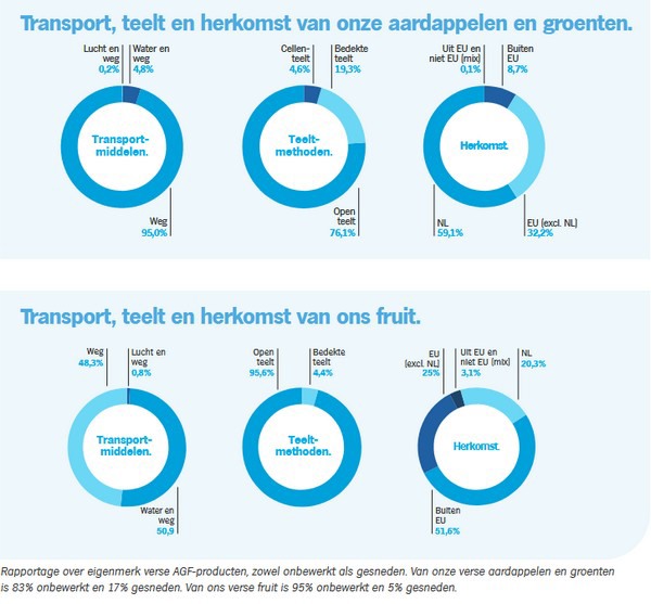"Come esattamente questo verrà applicato alla frutta e verdura è ancora una questione aperta per AH", ammette Anita Scholte op Reimer, responsabile qualità e sostenibilità presso la Groenten & Fruit. Le differenze tra i coltivatori che possono utilizzare l'energia geotermica e coloro che non ne hanno la possibilità, sono significative. A volte, diversi coltivatori forniscono prodotti che appartengono allo stesso gruppo di prodotti, ma in modo sfuso o non confezionato. AH utilizzerà un proprio metodo di calcolo dei punteggi di CO2, e non l'Horti Footprint, sviluppato dal settore dell'orticoltura in serra. Il calcolo di AH si basa sul Protocollo sui gas serra.