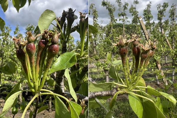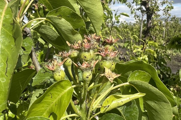 "Abbiamo ricevuto e-mail e telefonate per tutta la settimana", riferisce Pietjan Visser dell'OFH. "Le segnalazioni di danni provengono da tutti i Paesi Bassi e dal Belgio. La maggior parte riguarda i frutteti di pere, che attualmente si trovano nella fase cruciale di allegagione. Per quanto riguarda le mele, i danni visibili sono pochi o nulli, ma la situazione potrebbe cambiare. Abbiamo anche ricevuto alcune segnalazioni su piccoli frutti, soprattutto mirtilli".