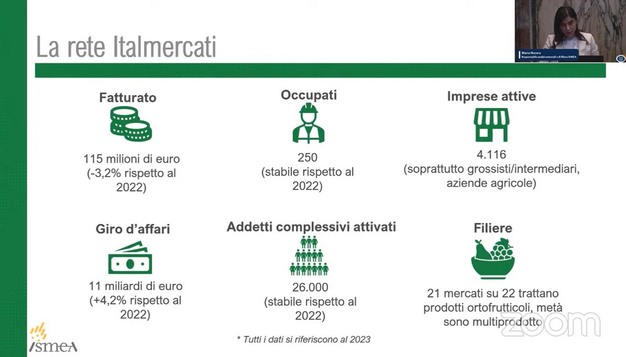 Lo studio di Ismea presso il network di Italmercati, costituito da una rete di 22 strutture, distribuite in 14 regioni italiane, quantifica un giro d'affari di 115 milioni di euro, un valore che raggiunge la ragguardevole cifra di 11 miliardi se si considerano anche le attività delle 4.000 realtà economiche operative nei mercati, tra distributori, aziende agricole, bar, ristoranti, facility provider e servizi accessori, con il coinvolgimento quotidiano di 26.000 addetti.
