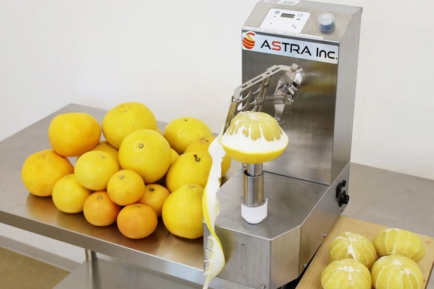 Con il nuovo modello, ASTRA ha sviluppato una gamma di funzionalità per soddisfare le diverse esigenze di pelatura degli agrumi di grande pezzatura. Il GF-1 serve per pelare gli agrumi con buccia molto spessa, come i pomelo. Il GF-2 serve per pelare piccoli agrumi a buccia spessa, come il pompelmo. L'MG-4 serve per ricavare la scorza dalla buccia degli agrumi. "La pelatrice è pre-programmata: tutto ciò che l'utente deve fare è posizionare la frutta sulla pelatrice, selezionare un programma e premere avvio. La velocità di pelatura può arrivare fino a 8 secondi per frutto. Con una profondità di pelatura regolabile, la lama può gestire le bucce da sottili come carta a spesse come cartone", spiega Ryo.