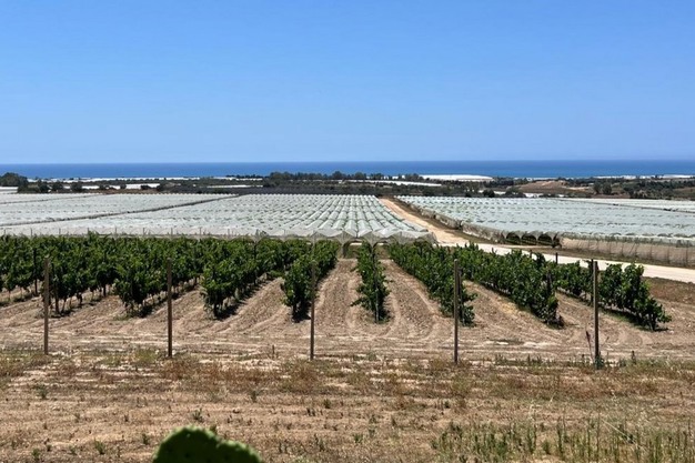 Serre di uva da tavola (sullo sfondo) e nuove colture esotiche (in primo piano)