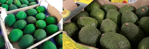 A sinistra: avocado Hass peruviano. A destra: avocado Hass del Kenya