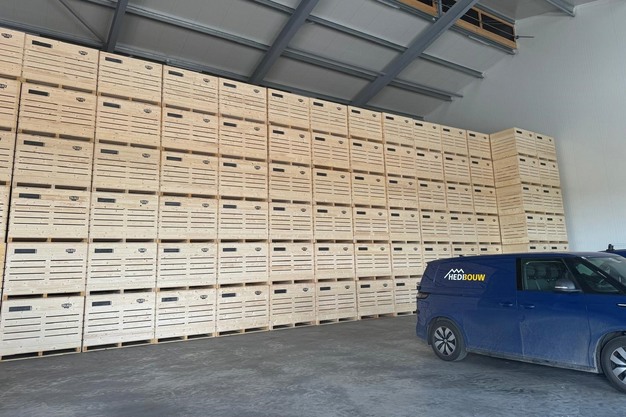 L'impianto di raffreddamento ospita 2.300 casse di pino della Naus Agriboxes. Queste vengono assemblate in loco per ridurre i costi di trasporto e l'impatto ambientale. Naus Agriboxes punta sul buon rapporto qualità-prezzo e utilizza solo legno proveniente da foreste gestite in modo sostenibile. La qualità e la durata delle casse sono cruciali, soprattutto in condizioni di stoccaggio a secco come quelle della Polder Potato. L'azienda sta anche testando un trattamento del legno che prolunga la durata delle casse senza farlo marcire, fondamentale per lo stoccaggio a lungo termine dei prodotti agricoli.