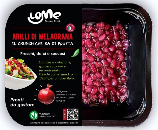 Lo stabilimento agroalimentare pensa di posizionarvi in questo interessante segmento di mercato in modo molto proficuo. "Siamo già pronti con la nostra vaschetta di arilli di melagrana Lome Super Fruit®, il brand con cui commercializziamo anche il prodotto fresco e i nostri succhi 100% solo pura spremuta a freddo di melagrana. Anche per gli arilli di quarta gamma, noi di Masseria Fruttirossi possiamo garantire a buyer e consumatori la provenienza e la filiera produttiva: confezioniamo solo arilli delle melagrane coltivate nei nostri 400 ettari dedicati, applicando disciplinari agronomici rispettosi dell'ambiente, il tutto supportato dalle numerose certificazioni di qualità internazionali in nostro possesso come GlobalGAP, BRC, IFS, SMETA e Vegan OK.