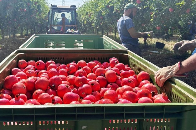 Il principale produttore italiano di melagrana ha da due giorni cominciato a raccogliere i primi frutti della nuova stagione relativi alle cultivar più precoci (come Shany, Emek e Ako), per poi continuare nei prossimi mesi con gli stacchi della varietà Wonderful.