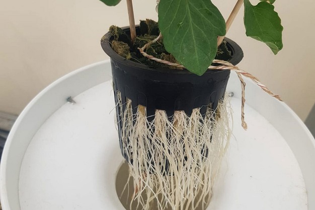 Apparato radicale pomodoro dopo 8 giorni dal trapianto all'interno del sistema aeroponico Airfruit
