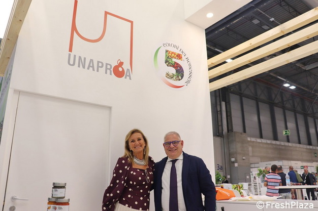 Lorena D'Annunzio e Melven Bosca nello stand Unaproa a Fruit Attaction 2023