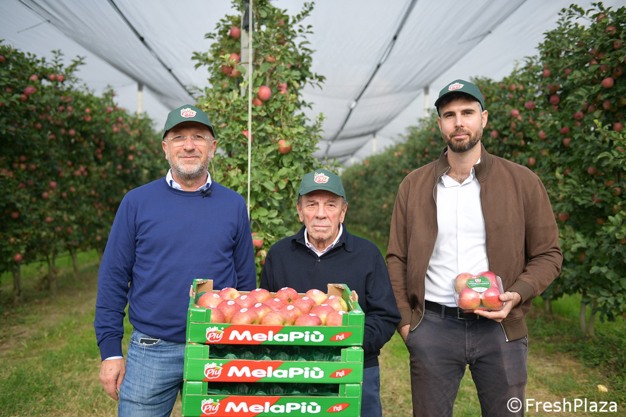 Clicca qui per il fotoalbumDa sinistra, Mauro Bruni (direttore Consorzio Melapiù), Vittorio Fugaroli (azienda agricola Fugaroli) e Matteo Mazzoni (presidente Consorzio Melapiù)