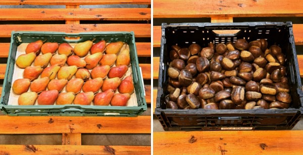Pere Williams rosse dalla Stiria e castagne precoci italiane.
