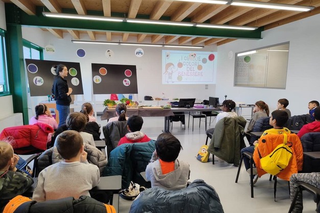 - 3 laboratori sull'educazione alimentare (1 per età 4-7 anni e 2 per età 8-11 anni): "Frutta e verdura a colori", "Lettura delle etichette", "Alimentazione varia".