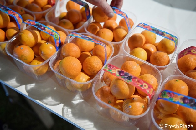 Alcuni dei cestini di clementine messe a disposizione dei bambini