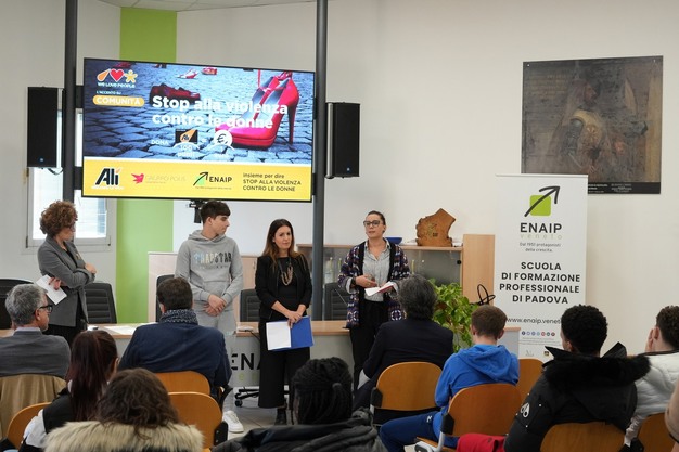 Il Gruppo Alì lancia una maratona solidale volta a sostenere gli interventi formativi nelle scuole condotti da Gruppo Polis, ma anche le attività delle tre case rifugio per donne e minori vittime di violenza, in vista della giornata internazionale per l'eliminazione della violenza contro le donne del 25 novembre. La raccolta fondi dei supermercati Alì per dire Stop alla violenza contro le donne, è stata presentata oggi nell'Aula Magna della Scuola di Formazione Professionale ENAIP Veneto, proprio nell'ambito di un intervento formativo di Gruppo Polis rivolto ai ragazzi di terza superiore.