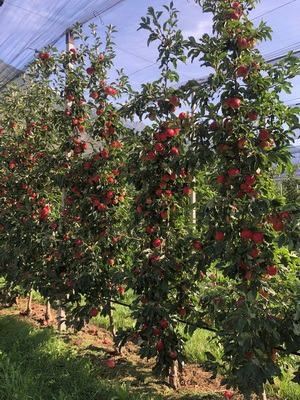 Nella foto a destra: un impianto di mele Lilibet