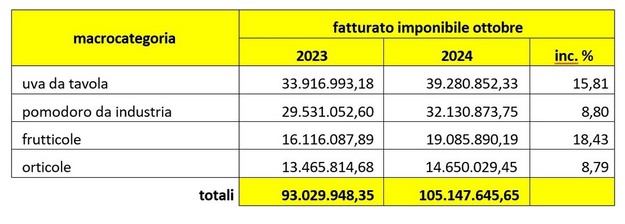 "Per la complessità dell'attività [che, a oggi, contempla ottanta diverse referenze], l'APOC ha concentrato il proprio lavoro di analisi su quattro macrocategorie: uva da tavola, pomodoro da industria, frutticole e orticole. I dati mettono in evidenza risultati che oserei definire esaltanti, raggiunti da ogni singola macrocategoria, già a ottobre – continua De Santis – L'entusiasmo dei nostri analisti porta a intravedere, per fine anno, un possibile fatturato di oltre 130 milioni di euro".
