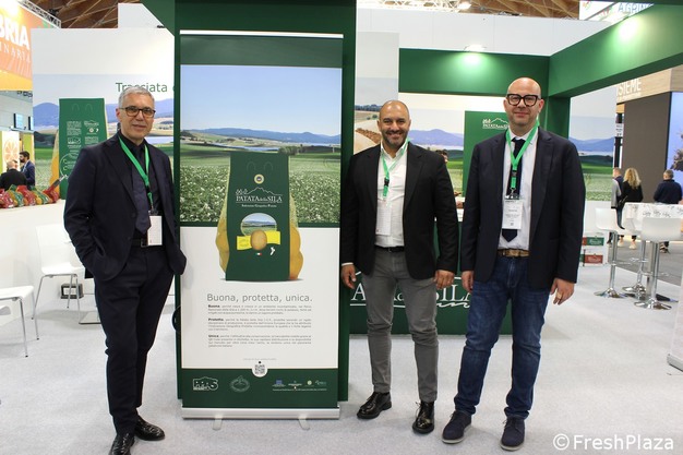Pietro Tarasi (presidente del Consorzio di tutela della Patata della Sila Igp), Albino Carli (direttore del Consorzio Produttori Patate Associati-PPAS) e Michele Santaniello (responsabile tecnico)