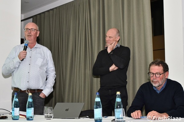 Da sinistra: Kris Wouters (Wouters Fruit), Tony Martin (CEO di Prevar) e il ricercatore Richard Volz (Plant & Food Research).