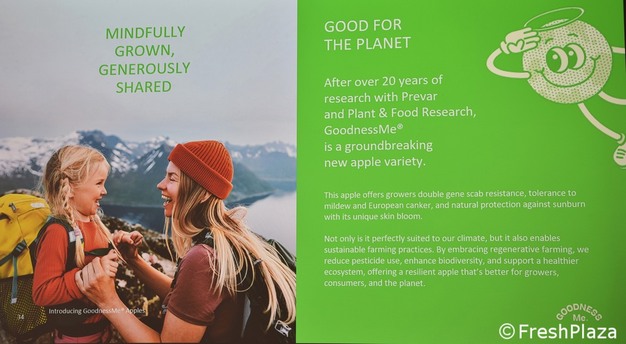 Kris ha sottolineato i rendimenti elevati, la resilienza e la posizione unica di GoodnessMe® sul mercato. "Questa varietà stabilisce un nuovo standard per una coltivazione di mele naturale, resiliente e deliziosa. Abbracciando l'agricoltura rigenerativa, riduciamo l'uso di pesticidi, miglioriamo la biodiversità e supportiamo un ecosistema più sano, offrendo una mela migliore per coltivatori, consumatori e pianeta". Wouters Fruit detiene la licenza esclusiva europea per GoodnessMe® e sta ora raccogliendo manifestazioni di interesse da parte dei coltivatori, che sono stati tra i primi a degustare questa straordinaria nuova varietà.