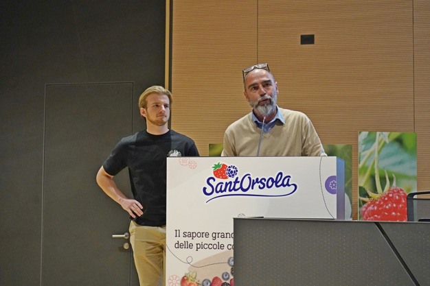 Gianluca Savini, responsabile dell'area ricerca, sperimentazione e sviluppo della Sant'Orsola e Kevin Koper della Wageningen University and Research hanno illustrato i risultati del loro lavoro, volto ad abbattere il caldo nelle serre e a migliorare la qualità e la produzione di fragole e piccoli frutti.