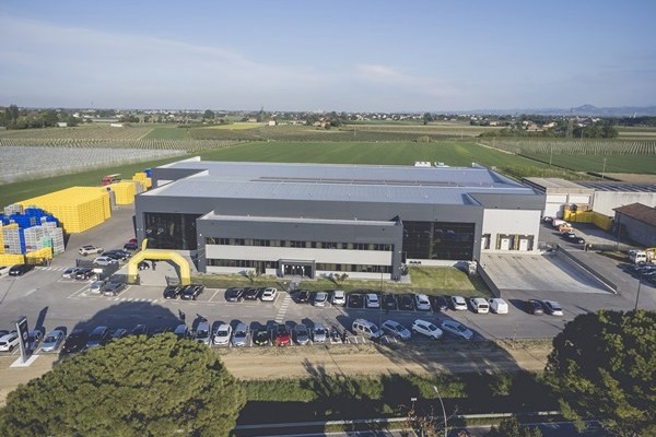 L'esterno del nuovo stabilimento inaugurato ufficialmente un paio di anni fa (cfr. Freshplaza del 10/05/2022). Le due ampie vetrate permettono di avere all'interno un'ottima luce anche nelle giornate uggiose