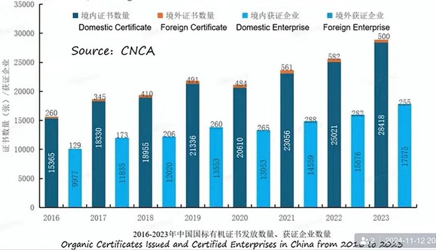 "Entro la fine del 2023, circa 17.500 aziende cinesi hanno ricevuto in totale 28.500 certificazioni biologiche. Una singola impresa può avere più di una certificazione. Dal 2016 al 2023, il numero di certificazioni è cresciuto in media di oltre il 10% all'anno", ha evidenziato Youting.
