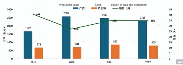 Guardando il grafico, il colore blu mostra quanto si stima che valga la produzione biologica certificata in Cina, mentre l'arancione mostra quanto di questa produzione viene effettivamente venduta