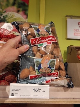 Nella foto a lato si può vedere una delle referenze a scaffale (le mandorle) a marchio La Cenerentola Srl.