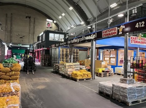 La bancarella della famiglia Stemmann presso il mercato all'ingrosso