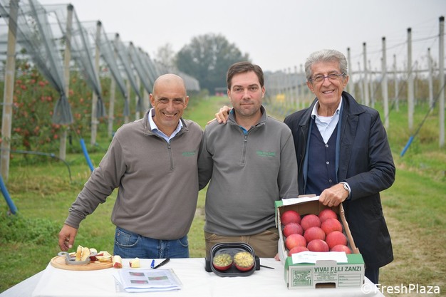 "In Piemonte vi sono già diversi ettari in produzione e i risultati sono molto positivi. È molto produttiva, ma quello che la caratterizza è il colore brillante, di un rosso striato marcato, il calibro importante e il sapore – a oggi, nella seconda metà di dicembre, i °Brix sono 17.5, la durezza 7.5, il gusto si mantiene aromatico ed equilibrato, con un frutto ancora molto succoso, croccante e deliquescente. Abbiamo creduto in questa varietà - continua Zanzi - fin da subito, dopo aver analizzato attentamente le prove in diversi areali. Stiamo ancora svolgendo ulteriori verifiche, perché nel nostro DNA c'è quello di sperimentare e provare sempre. È una mela che soddisfa tre categorie: quella degli agricoltori, quella dei commercianti e infine, ma altrettanto importanti, le esigenze del consumatore".