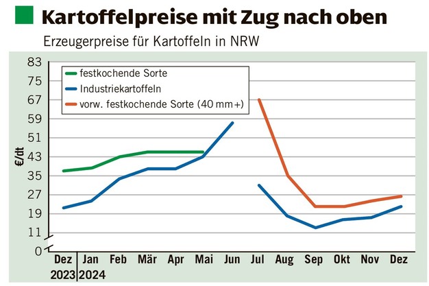 Dopo un estremo 2024 il mercato delle patate da mensa dovrebbe rimanere stabile per il momento, mentre il mercato delle patate industriali rimarrà più volatile, secondo l'ultima quotazione REKA della Renania.