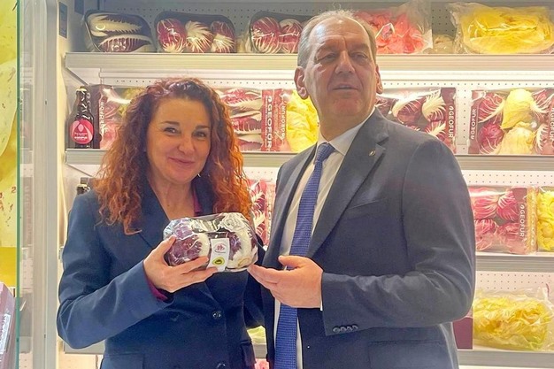Cristiana Furiani e il sottosegretario Patrizio Giacomo La Pietra con una confezione di radicchio di Verona IGP