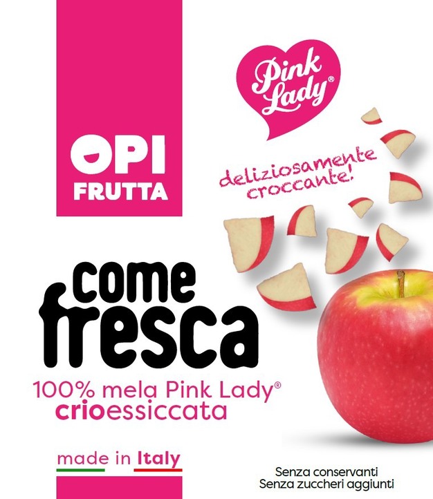 "La nostra nuova collaborazione con Pink Lady® è iniziata perché il team di Pink Lady® Europe è rimasto positivamente colpito dalla nostra innovativa tecnologia di crioessiccazione. Subito dopo i primi test, ci siamo resi conto che il gusto unico e la piacevole croccantezza della mela Pink Lady® si sposavano alla perfezione con il nostro metodo, che rimuove solo l'acqua, preservando le proprietà organolettiche della frutta fresca senza impiegare conservanti né zuccheri aggiunti – spiega Civolani – Lo snack di mela Pink Lady® crioessiccata OPI Frutta, facente parte della nostra linea 'come fresca', preserva alla perfezione la croccantezza e il sapore inconfondibili della Pink Lady® fresca. Il nostro obiettivo è quello di portare questo prodotto unico in tutta la Grande distribuzione organizzata italiana a partire da San Valentino 2025".