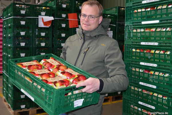 Jürgen Faby durante una visita aziendale di FreshPlaza.de nel 2023. Dovrebbero esserci scorte sufficienti di Wellant, Junami e Red Jonaprince fino all'inizio della nuova raccolta.