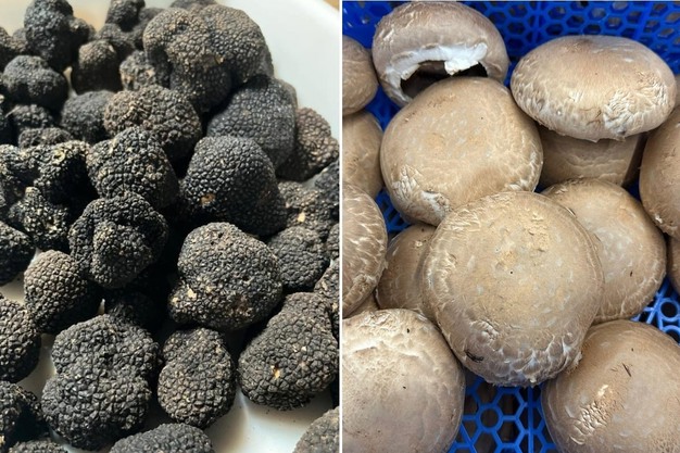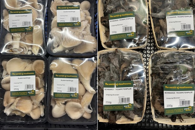 A sinistra: tartufi neri. A destra: nonostante gli ulteriori aumenti dei costi, i prezzi degli champignon sono sostanzialmente uguali a quelli dell'anno scorso. Questa è una decisione consapevole, secondo la direzione di Paris Direkt GmbH.