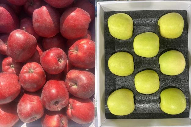 A sinistra: mele Jingning Patch Red Fuji; a destra: mele Jingning Striped Red Fuji
