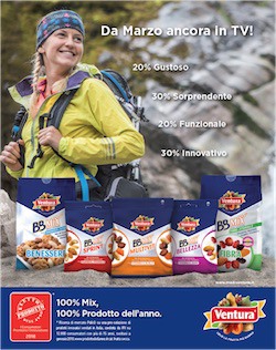 "Si tratta di una campagna di comunicazione integrata - spiega Fabio Tosello direttore vendite presso Madi Ventura Spa - strategicamente studiata per proseguire il percorso virtuoso di crescita della notorietà della marca Ventura, di ampliamento dei momenti di contatto con il nostro core target, attivo, dinamico, sperimentatore, attento all'alimentazione, esploratore del gusto, insomma un target che vive questo tempo consapevolmente. Per coinvolgerlo al meglio puntiamo tutto sulla linea BBMIX - mix di frutta secca ed essiccata".