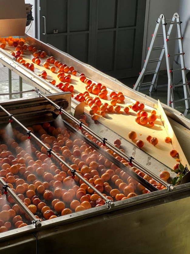 Nella scorsa stagione, la Sicilia Succhi ha acquistato direttamente dai produttori circa 1.900 tonnellate di meloni e angurie, oltre 10.000 tonnellate di uva e 12.000 tonnellate di arance. Tra queste, l'80-85% sono state arance rosse, che sono le più richieste sul mercato. "Quando selezioniamo la frutta fresca da trasformare, ci concentriamo principalmente sulla qualità. Per le arance, ad esempio, cerchiamo un alto contenuto di antociani, che conferiscono il caratteristico colore rosso, e ci assicuriamo che la frutta non sia marcia o presenti muffe. Un'arancia può avere un aspetto estetico non perfetto, e presentare ad esempio graffi o piccoli difetti visivi, ma l'importante è che sia sana".