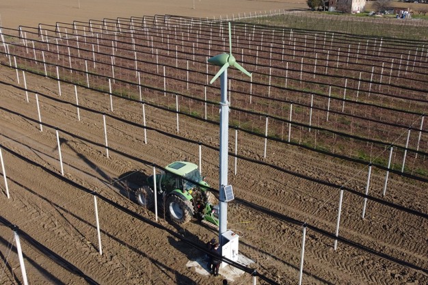 Contro le gelate tardive, ma anche contro i rumori eccessivi che talvolta creano disagi nei dintorni delle aziende agricole, i ventilatori elettrici prodotti dall'azienda toscana Aria srl costituiscono una soluzione. "Una delle nostre ultime novità, che sta destando interesse - spiega Manuele Morelli, titolare di Aria e ingegnere progettista - è la versione mobile Antibrina 3-22-C installata su carrello agricolo. Abbiamo progettato l'unico ventilatore antibrina mobile alto 10 metri. Si tratta dello stesso modello, montato su plinto di fondazione, con le stesse prestazioni in termini di copertura dei ventilatori fissi, ma con la flessibilità di quelli mobili. La particolare progettazione ci ha consentito inoltre di realizzare un macchinario che, nonostante l'altezza, risulta molto compatto e, una volta chiuso, può essere facilmente spostato all'interno dei filari".