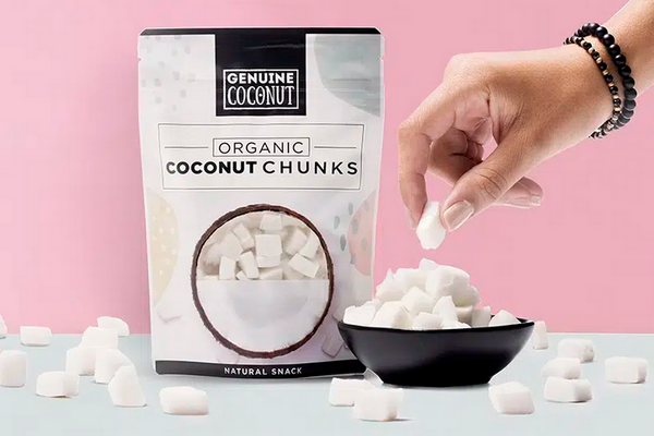 "I pezzi di cocco vengono presentati in modo piuttosto innovativo rispetto alla concorrenza. Non solo nella confezione, che ci consente di prolungare la shelf life del prodotto, rendendolo più pratico nel consumo, ovunque e in qualsiasi momento, ma anche perché offriamo pezzi di cocco completamente sbucciati, senza lo strato legnoso che solitamente rimane attaccato alla polpa di cocco. Inoltre, è anche certificato biologico", sottolinea Ana.