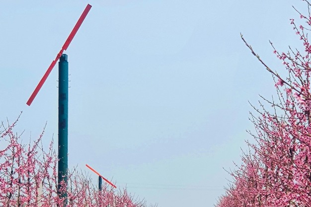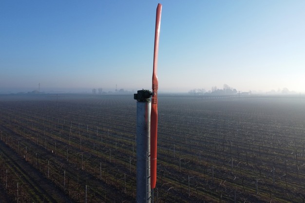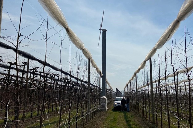 "Più di recente, gli impianti AID sono stati commercializzati da Oranfresh, in risposta all'intensificarsi delle gelate tardive primaverili. Sono stati installati principalmente nei frutteti italiani, specialmente in Emilia-Romagna, Piemonte, Veneto e Lazio – prosegue Motta – Per queste aree, sono stati sviluppati impianti di maggiore potenza, tra 175 HP e 240 HP, con motori IVECO e un'elica innovativa in fibra di carbonio, rinforzata internamente con strutture in fibra di vetro. È stato inoltre introdotto un nuovo profilo alare, con un diametro variabile da 5,90 metri a 6,10 metri per le ventole con motori da 175 e 240 HP. Le nostre potenti WMD 230 proteggono dalle gelate da irraggiamento fino a 6,5/7 ettari, in funzione del tetto termico e dell'entità delle temperature minime, che possono raggiungere i -5/-6°C. L'efficacia della protezione dipende anche dallo stato vegetativo delle piante e delle varietà da proteggere".