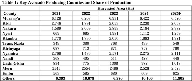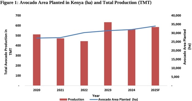 Si prevede che la produzione aumenterà del 4% nel 2025, raggiungendo 585mila tonnellate grazie all'estensione dell'areale e al miglioramento delle rese per ettaro. Oltre 30 contee, tra cui Murang'a, Kiambu e Nakuru, sono attivamente impegnate nella coltivazione di avocado, grazie alle loro favorevoli condizioni ecologiche. Il Paese beneficia di un clima tropicale e subtropicale, con precipitazioni ben distribuite e temperature moderate, ideali per la crescita dell'avocado. Le principali stagioni di raccolta vanno da marzo ad agosto e da ottobre a dicembre, a seconda della varietà, con Hass e Fuerte come varietà più comuni.