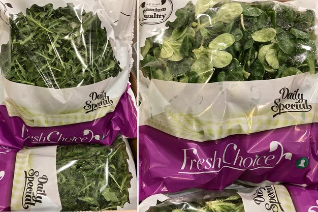 La gamma di baby leaf della Johann Quast GmbH: rucola (a sinistra) e songino in sacchetto. Queste verdure dalle foglie delicate vengono coltivate nell'area di Copenaghen, sia in pieno campo che in serra.