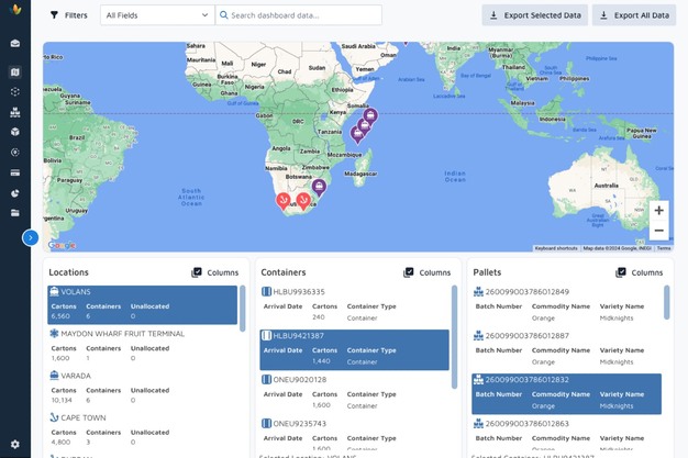 La piattaforma 'one stop' gestisce l'intero processo di esportazione e commercio locale, dall'inizio alla fine. Diversi operatori possono accedere alla piattaforma in modo sicuro e visualizzare gli stessi dati relativi a pallet o container, che si tratti del coltivatore, dello spedizioniere o del fornitore di servizi. L'utilizzo del software track and trace consente ai rivenditori di ottenere anche visibilità su tutta la catena, consentendo una migliore pianificazione della domanda e dell'offerta.
